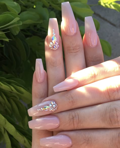 This is a perfect example of simple pretty rhinestone nails that look polished and elegant every day.