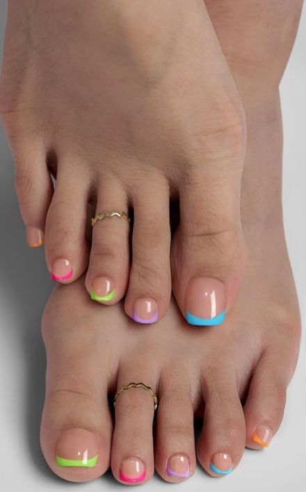 These colors refresh traditional French-tip toenail design ideas while remaining easy to style during travel.