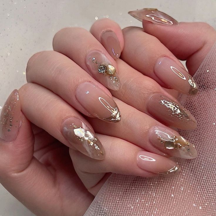 Nude, pastel, matte, or clear bases paired with tiny charms, dried flowers, or subtle shimmer create natural, versatile looks perfect for both day and night events.